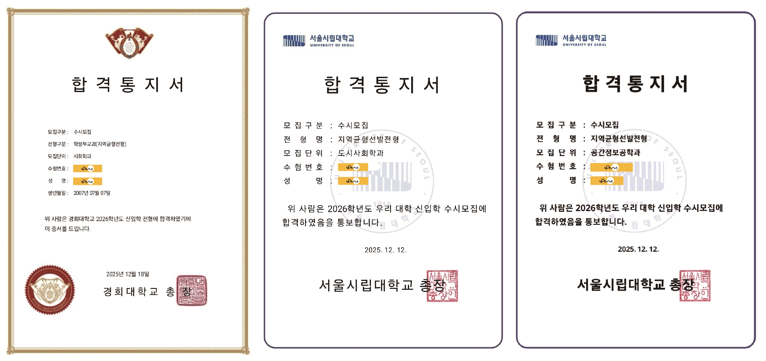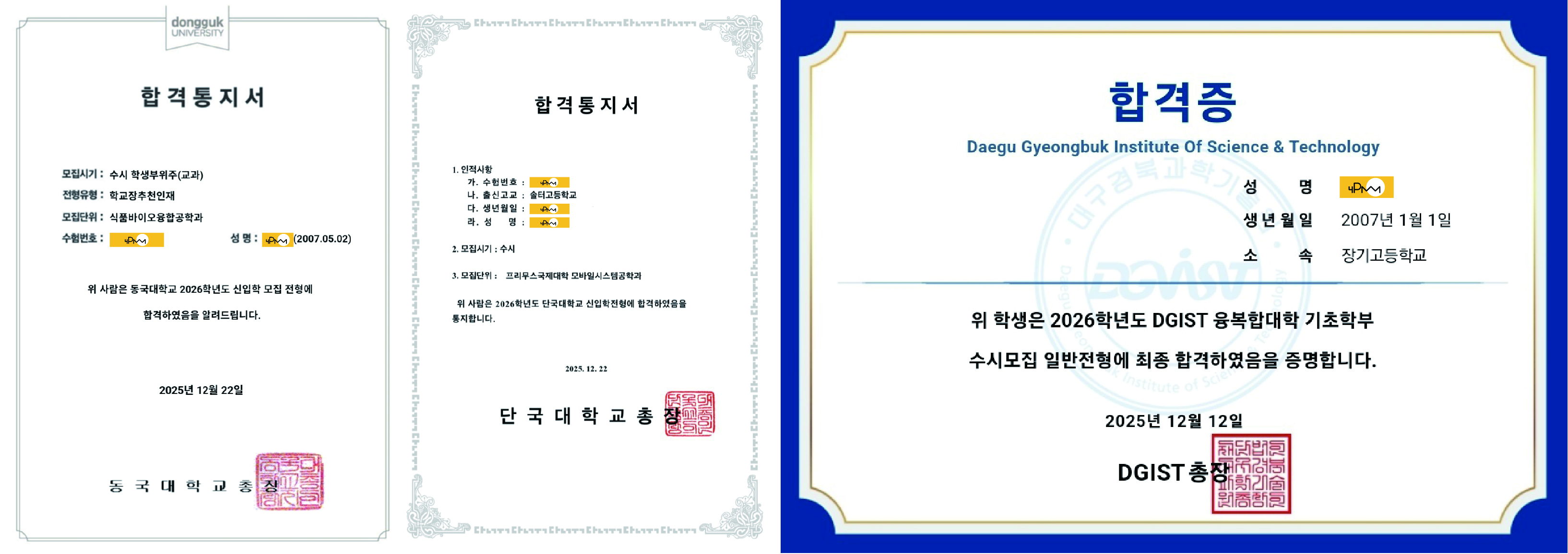 끝까지 버텨내고 결국 대입에 성공한 학생들입니다.